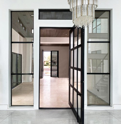 Two of the hottest trends in home design right now are Transitional Architecture and Minimalism, and modern iron doors and slim line iron doors are perfectly suited to this aesthetic. They offer maximum visibility thanks to energy-efficient glass options and help open up any space by allowing plenty of natural light to shine through. They also provide supreme security by integrating with steel rails and jambs that can be paired with all types of hardware.
